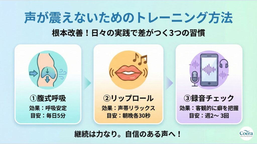 まずは今日からできることを一つ始めて、震えない声を手に入れてください。