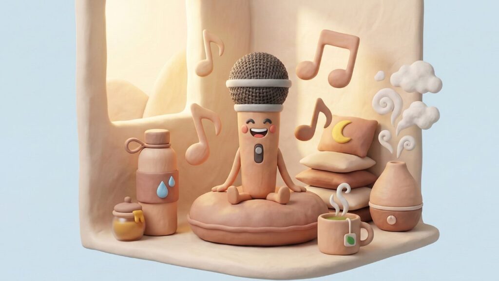 十分に声を休ませる時間を確保し、筋肉の緊張を解くことが重要です。