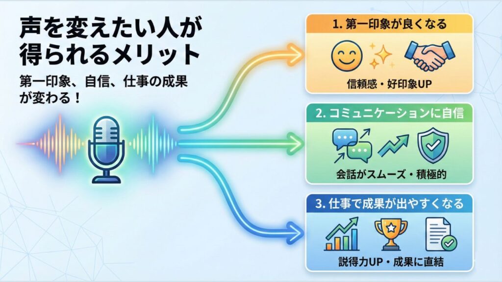 ここでは、声が変わることで期待できる代表的なメリットを3つ紹介します。